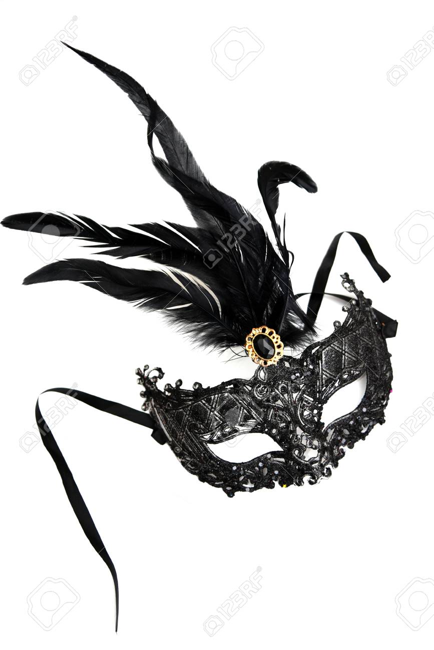女性の仮面舞踏会マスク お祭りの仮面舞踏会 分離された白の背景に黒の高級マスク の写真素材 画像素材 Image